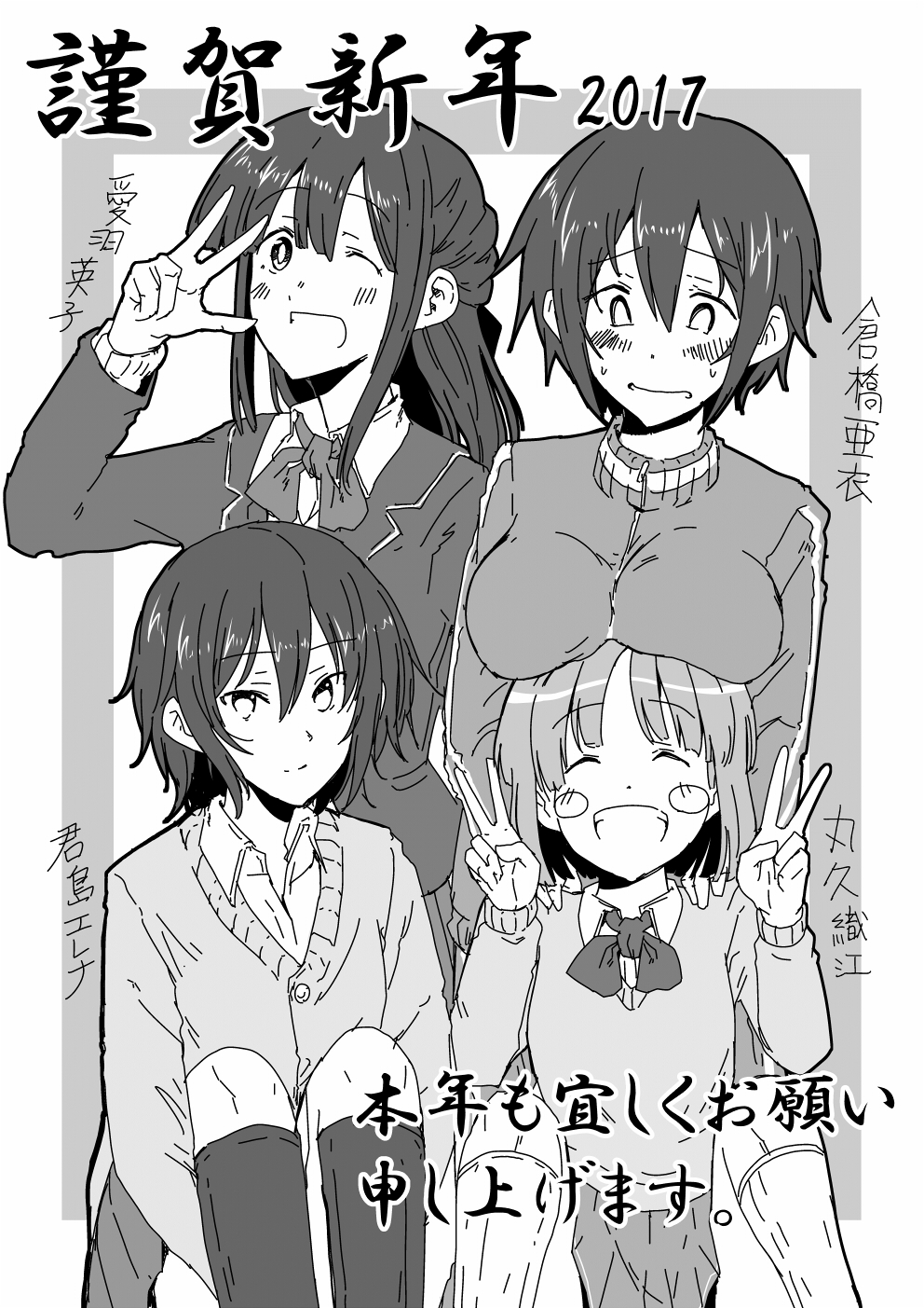 超余談ですが、2017年の書初めは2016年に描いた漫画ヒロインズ